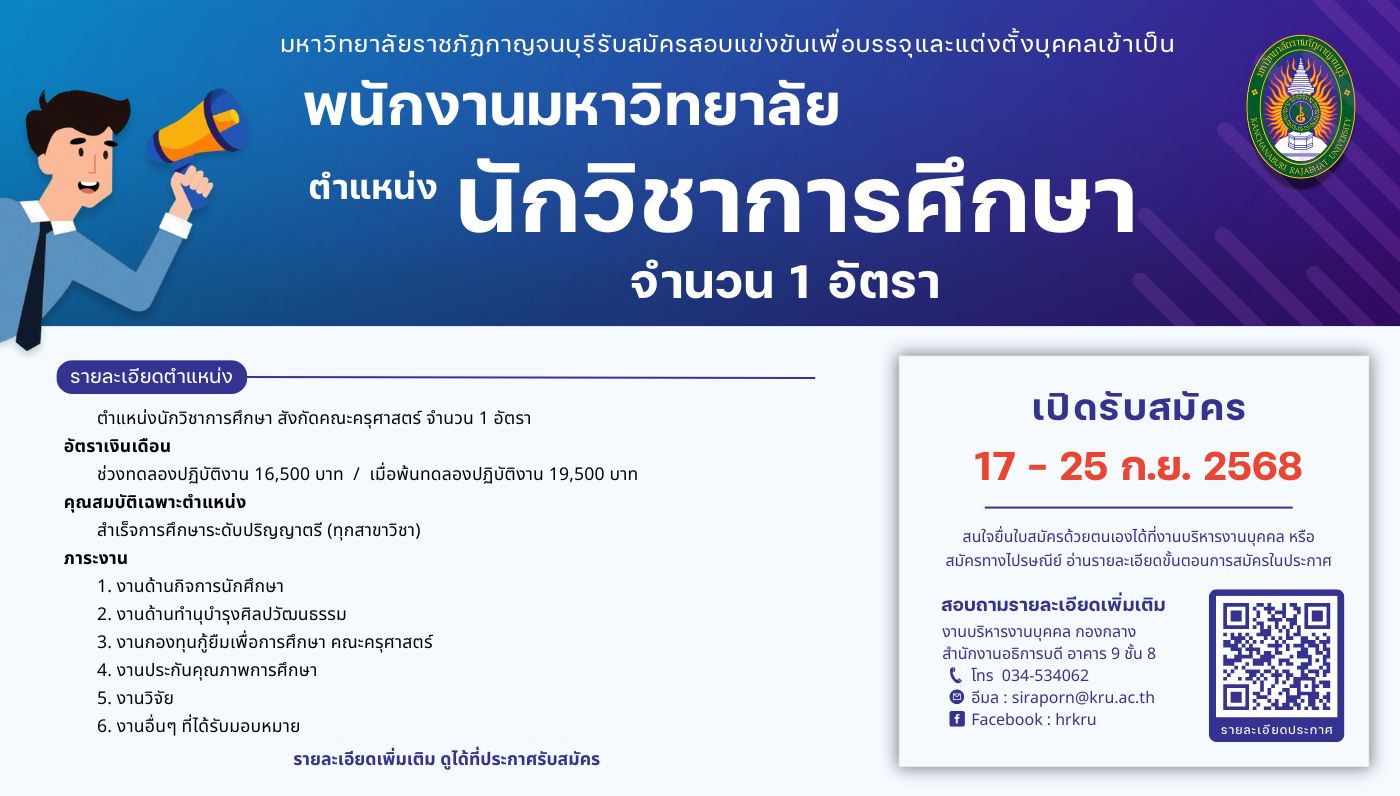 ประกาศรับสมัครพนักงานมหาวิทยาลัยสายสนับสนุน ครั้งที่ 2/2568