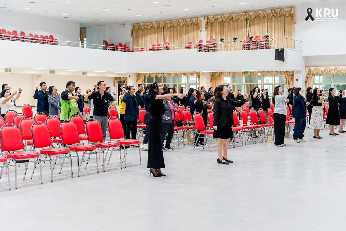 วันที่ 26 พฤศจิกายน พ.ศ. 2568 เวลา 13.30 น. ที่หอประชุมอาคารเรียนรวมและอเนกประสงค์ มหาวิทยาลัยราชภัฏกาญจนบุรี ผู้ช่วยศาสตราจารย์ ดร.พจนีย์ สุขชาวนา อธิการบดีมหาวิทยาลัยราชภัฏกาญจนบุรี มอบหมายให้ ดร.กุลวิตรี พร่ำรุ่ง รองอธิการบดี เป็นประธานในการเปิดโครงการ Happy University : กิจกรรม : มหาวิทยาลัยแห่งความสุขสู่องค์กรสุขภาวะ กิจกรรมย่อยที่ 2 Happy KRU : เสริมสร้างสุขภาวะ (กายและจิต) . ภายในกิจกรรมมีการแบ่งกลุ่มฝึกภาคปฏิบัติ เรื่อง “จัดการสุขภาพจิตกับความสุขในที่ทำงาน : Balancing your Life” วิทยากร ประกอบด้วย ดร.ปรเมศร์ กลิ่นหอม, อาจารย์ศรินยา ทรัพย์วารี, อาจารย์สิริวรินทร์ เกรย์ และการแบ่งกลุ่มฝึกภาคปฏิบัติ เรื่อง “การออกแบบโปรแกรมสุขภาพ ด้วย BMI” วิทยากร ผู้ช่วยศาสตราจารย์ธิติพงศ์ สุกใส, ดร.วัชรพล เคนศรี, อาจารย์จาตุรนต์ ลิ่มหัน