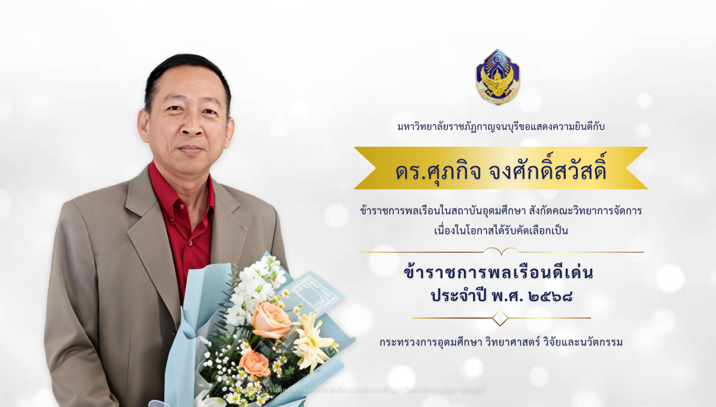ขอแสดงความยินดีกับ ดร.ศุภกิจ จงศักดิ์สวัสดิ์ ข้าราชการ สังกัดคณะวิทยาการจัดการ เนื่องในโอกาสได้รับการคัดเลือกเป็น ข้าราชการพลเรือนดีเด่น ประจำปี พ.ศ. 2568